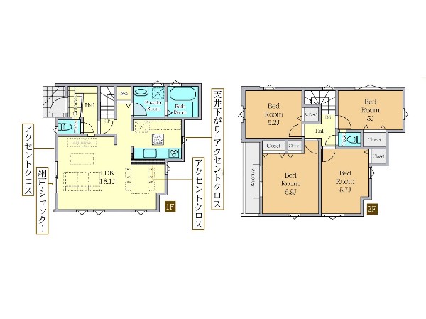 | 設備 | 公営水道、公共下水、2×4工法、外壁サイディング、緑豊かな住宅地、閑静な住宅地、スーパーが近い(10分以内)、2沿線以上利用可、小学校徒歩10分以内、保育施設・幼稚園5分以内、公園5分以内、コンビニ5分以内、システムキッチン、ガス3口、食器洗い機付き、I型キッチン、ユニットバス、追い焚き、浴室乾燥機、ウォシュレット、トイレ2ヶ所、浴室に窓、暖房便座、バルコニー、南面バルコニー、2階建、LDK20畳以上、採光2面、採光3面、全室2面採光、フローリング、クローゼット、収納、床下収納、下駄箱、シャンプドレッサー付き、モニタ付きインターフォン、インターフォン、複層ガラス、24時間換気システム、建物10年保証 |