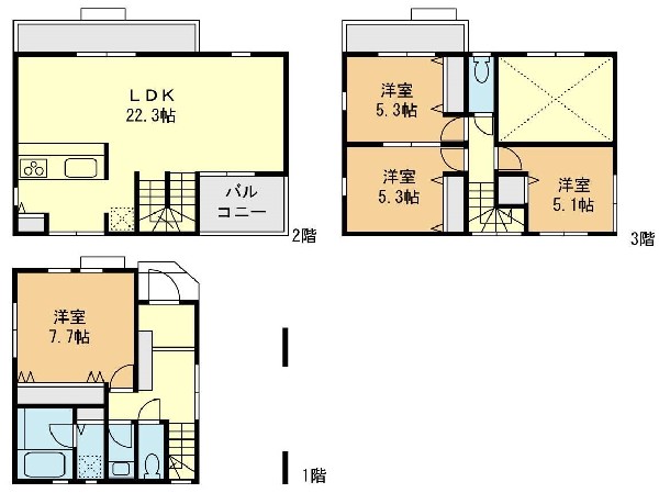 川崎市中原区宮内3丁目 新築一戸建 5349万円 3号棟