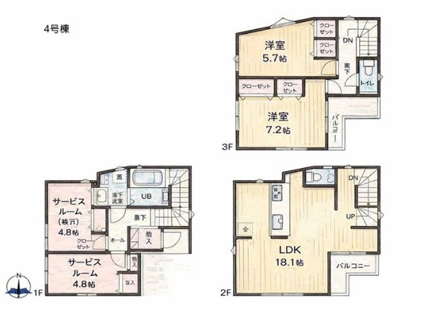 川崎市麻生区王禅寺東5丁目 新築一戸建 5790万円 4号棟